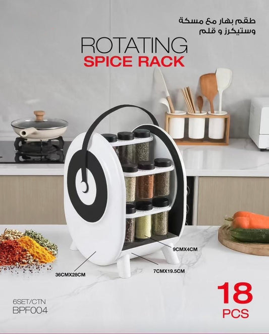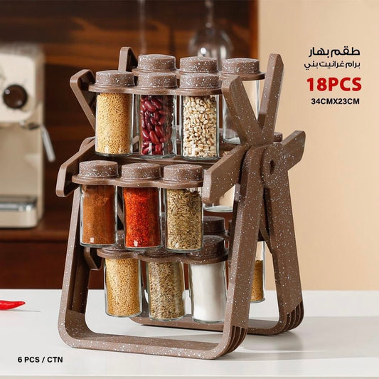 18-Piece Granite Spice Jar Set with 360° Rotating Stand